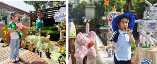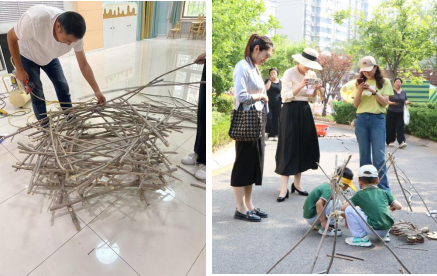 共建单位历城机关第二幼儿园的老师和小朋友们共同参与其中。多个展区主题各异,不同材料的碰撞,诉说着“无用”到“有用”再到“有趣”的蜕变。小朋友们天真烂漫的想法和纯真的笑容,为活动增添了许多欢乐的氛围。也成为了绿芽循华园里一道独特的风景线。