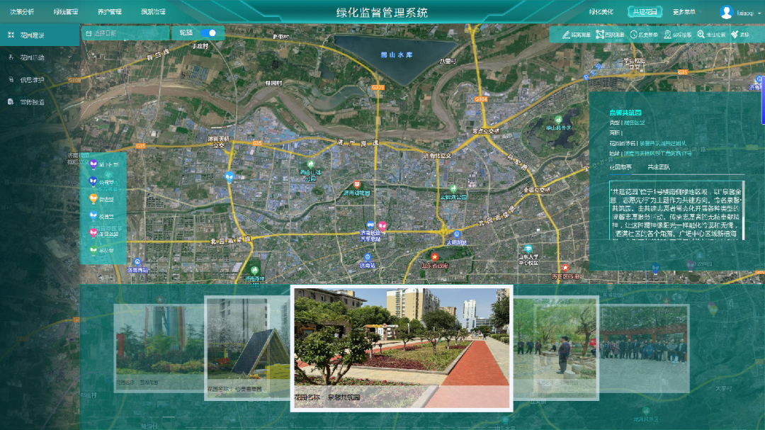 面对城市绿化精细化管理的新要求,我局以智慧化建设为突破口,以系列政策规划引领方向,成功打造了三大核心平台,一是以“园林绿化资源一张图”构筑管理决策的“智慧底座”,运用GIS+技术构建绿化资源数据库,打造“图斑 + 属性 + 图片”的可视化资源地图;二是以“养护管理信息平台”打造日常养护的“智能引擎”,配套移动端 APP,构建“抄告 - 整改 - 回复 - 审查 - 复查 - 办结”闭环管理模式,通过市、区(县)园林部门及养护单位联动,实现绿化问题的即时发现、及时处置;三是以“绿化监督管理系统”形成闭环监管的“高效抓手”,系统整合绿线管理、飘絮治理等城市绿化重点业务,实现业务管理信息、重点专项统计信息和监测预警信息的“一屏感知”,这些平台的深度融合与协同应用,正驱动济南城市绿化管理效能实现质的飞跃。
