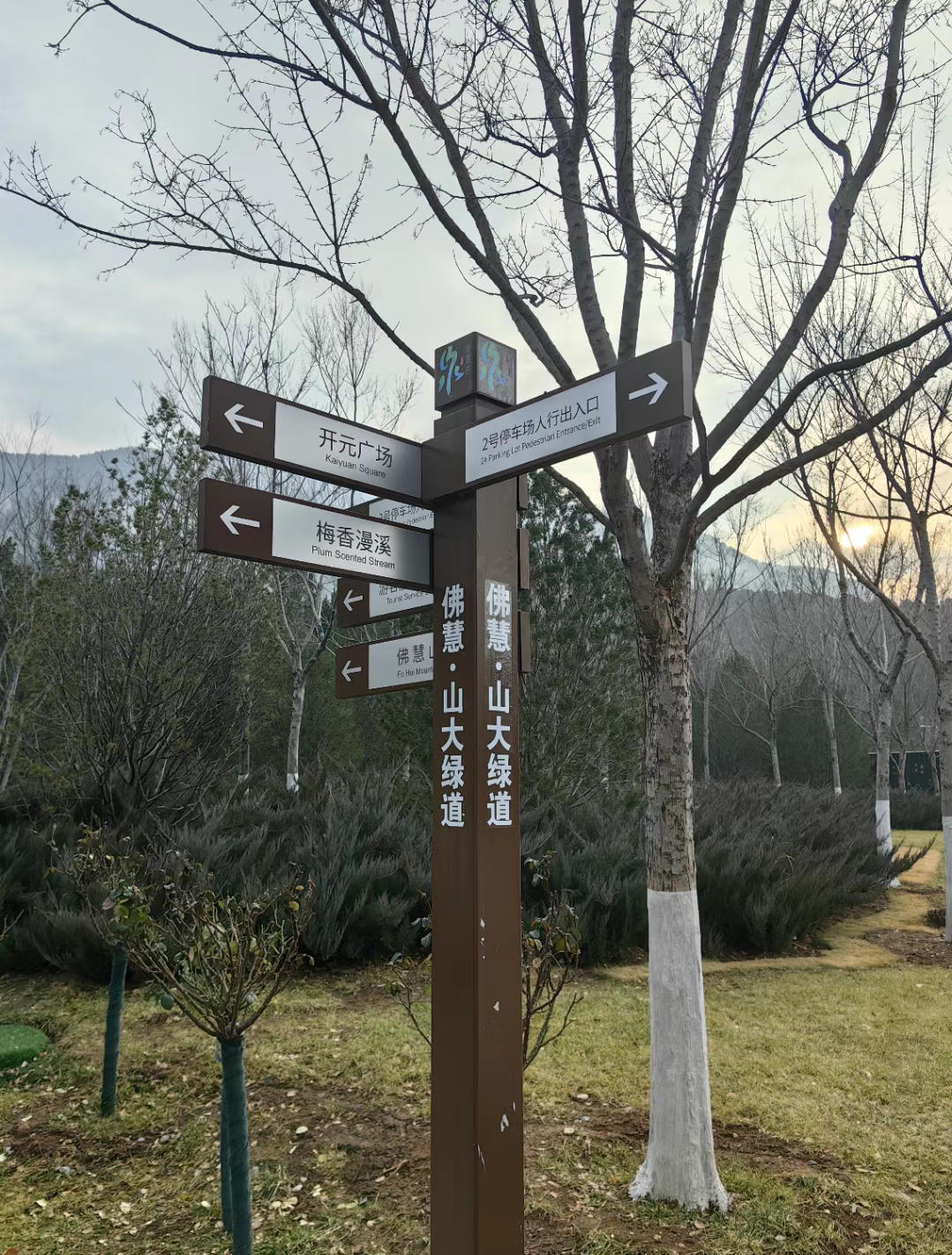 佛慧•山大绿道,以佛慧山景区为核心,选取部分绿道路段进行命名。其中核心路段由佛慧山东南入口驿站至佛慧山北广场,全长2公里。目前已设置沿线指示牌30处,进一步完善标识系统,增强了佛慧•山大绿道辨识度与可达性。到佛慧山,漫游佛慧•山大绿道,让脚步慢下来,快乐漫上来,把所有藏在心里的事都摊到冬日的阳光里。