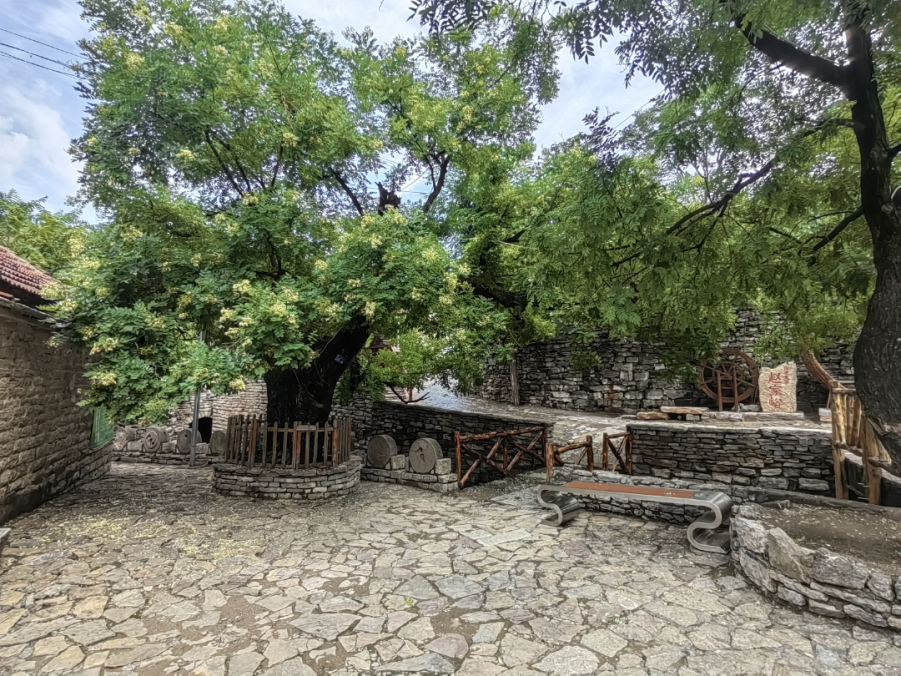 古树园的建设注重与居民生活空间有机融合,巧妙利用古树形成的天然绿荫,配套建设小型活动广场、休闲座椅等设施,将其转化为深受居民喜爱的“户外客厅”。南部山区积米峪古树园围绕古树设置造型自然、别致的仿木护栏,周边搭配小型活动广场与休憩桌椅,为村民提供日常活动与闲坐交流的舒适空间;钢城区大沟村古槐园结合乡村旅游需求,合理配置休闲游憩设施,使古树保护与乡村文旅相得益彰,成为一道亮丽的风景线;市中区后魏华庄古柏园在周边建设休闲广场,布置花卉、乔灌木、亭廊与坐凳,营造出层次丰富、功能复合的绿色公共空间,供居民日常活动与休憩使用。