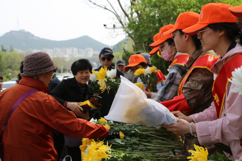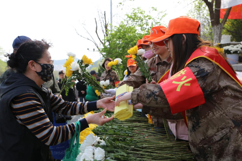 火种换鲜花 “换”出祭祀新风尚 | 济南市园林和林业绿化局举办“送您一枝鲜花 请把火种留下”志愿服务活动