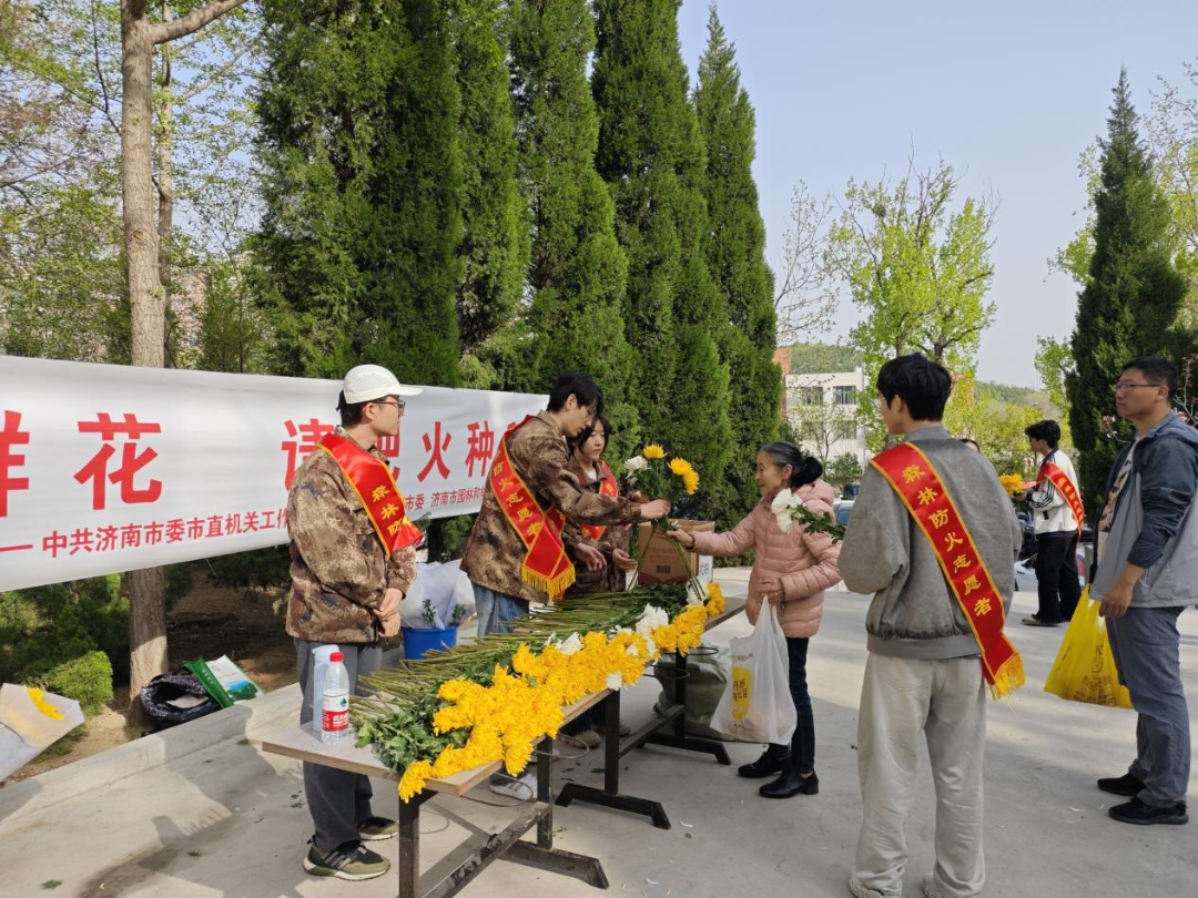 清明节是祭奠逝者、缅怀先人的重要传统节日,也是传承家风、寄托思念的重要时刻。为倡树文明祭祀新风,营造文明、绿色、安全的祭扫环境,4月5日上午,由中共济南市委市直机关工作委员会、共青团济南市委、济南市园林和林业绿化局主办,济南市林场承办的“送您一枝鲜花 请把火种留下”志愿服务活动,在羊头峪和廻龙山两处长生林同时举办。
