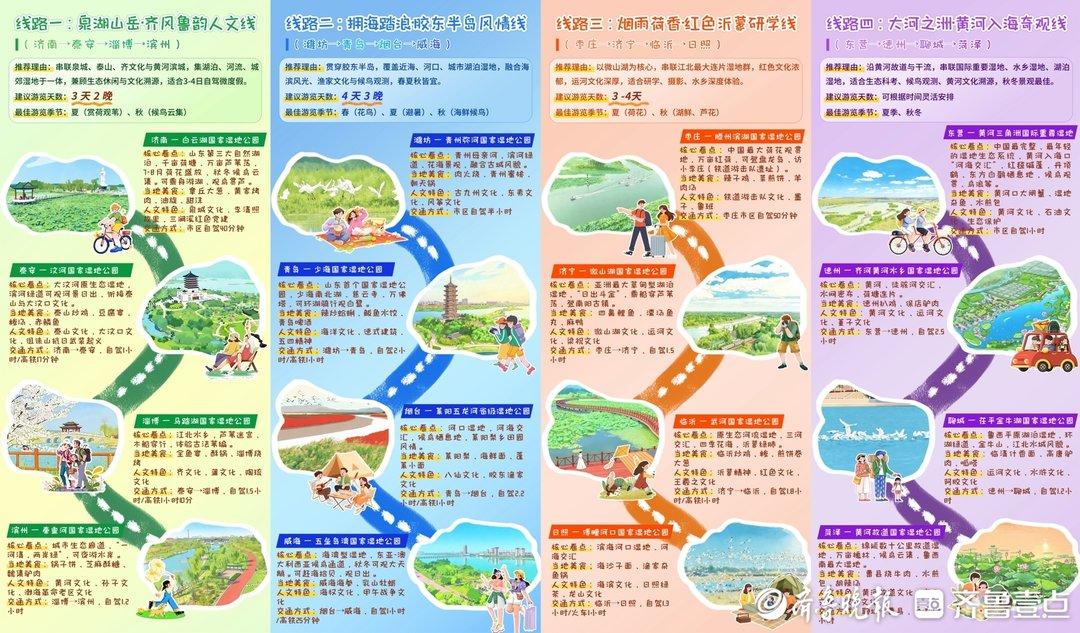 本次宣传周面向公众发布4条湿地主题生态旅游推荐线路,涵盖泉湖山岳·齐风鲁韵人文线、拥海踏浪·胶东半岛风情线、烟雨荷香·红色沂蒙研学线、大河之洲·黄河入海奇观线,串联起全省特色湿地资源与人文景观,为公众亲近湿地、体验湿地提供清晰指引。同步亮相的“湿地润齐鲁”云平台,如同一份“齐鲁湿地诗意地图”,打造指尖可及的“数字湿地馆”,方便公众随时随地了解湿地、游览湿地。