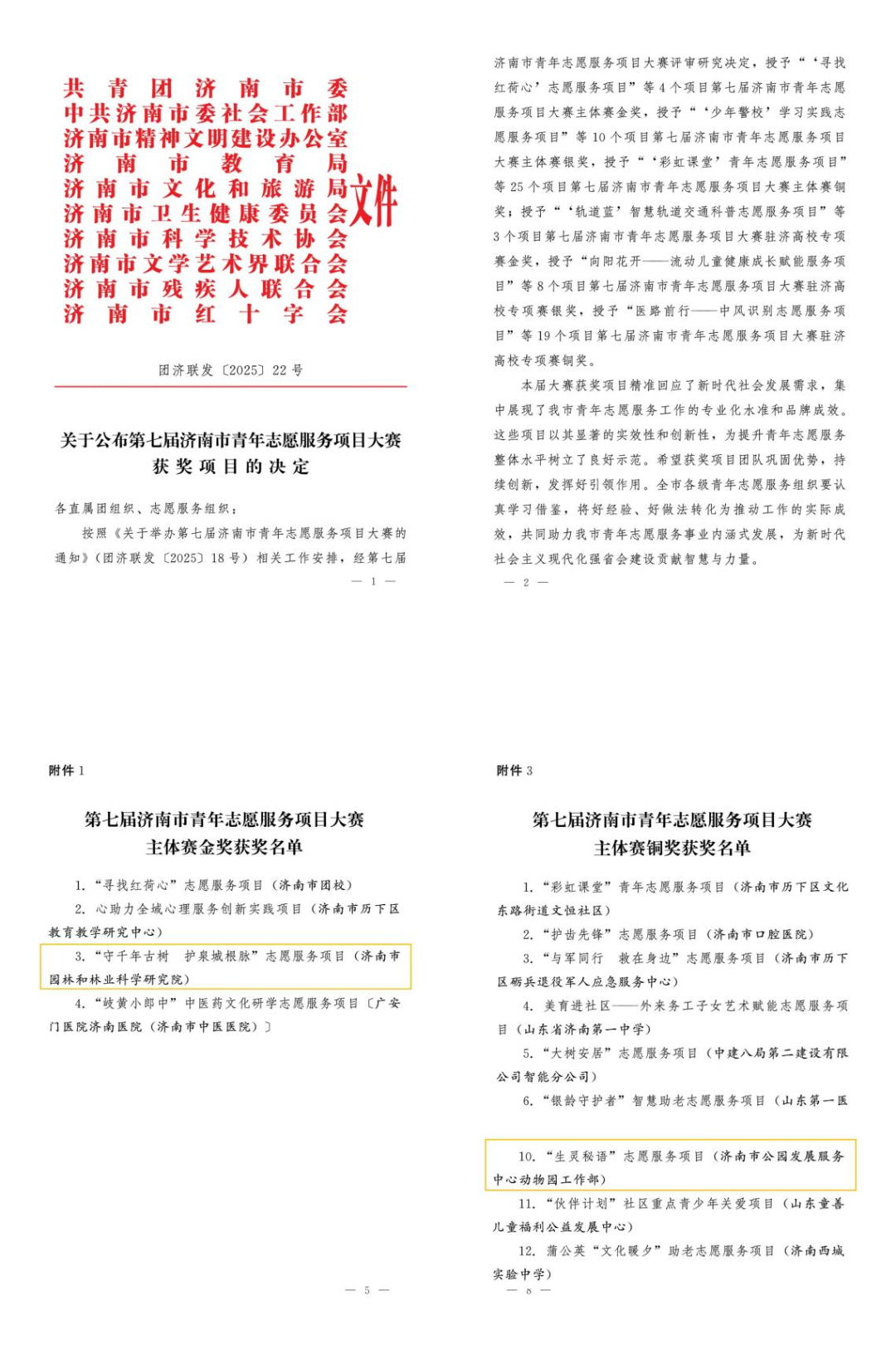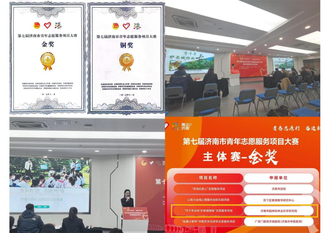 近日,第七届济南市青年志愿服务项目大赛获奖名单揭晓,由济南市园林和林业绿化局选送的“守千年古树 护泉城根脉”项目(市园林和林业科学研究院推报)斩获主体赛金奖,“生灵秘语”项目(市公园发展服务中心推报)获铜奖,圆满完成了年初团建品牌创建的既定目标任务之一。