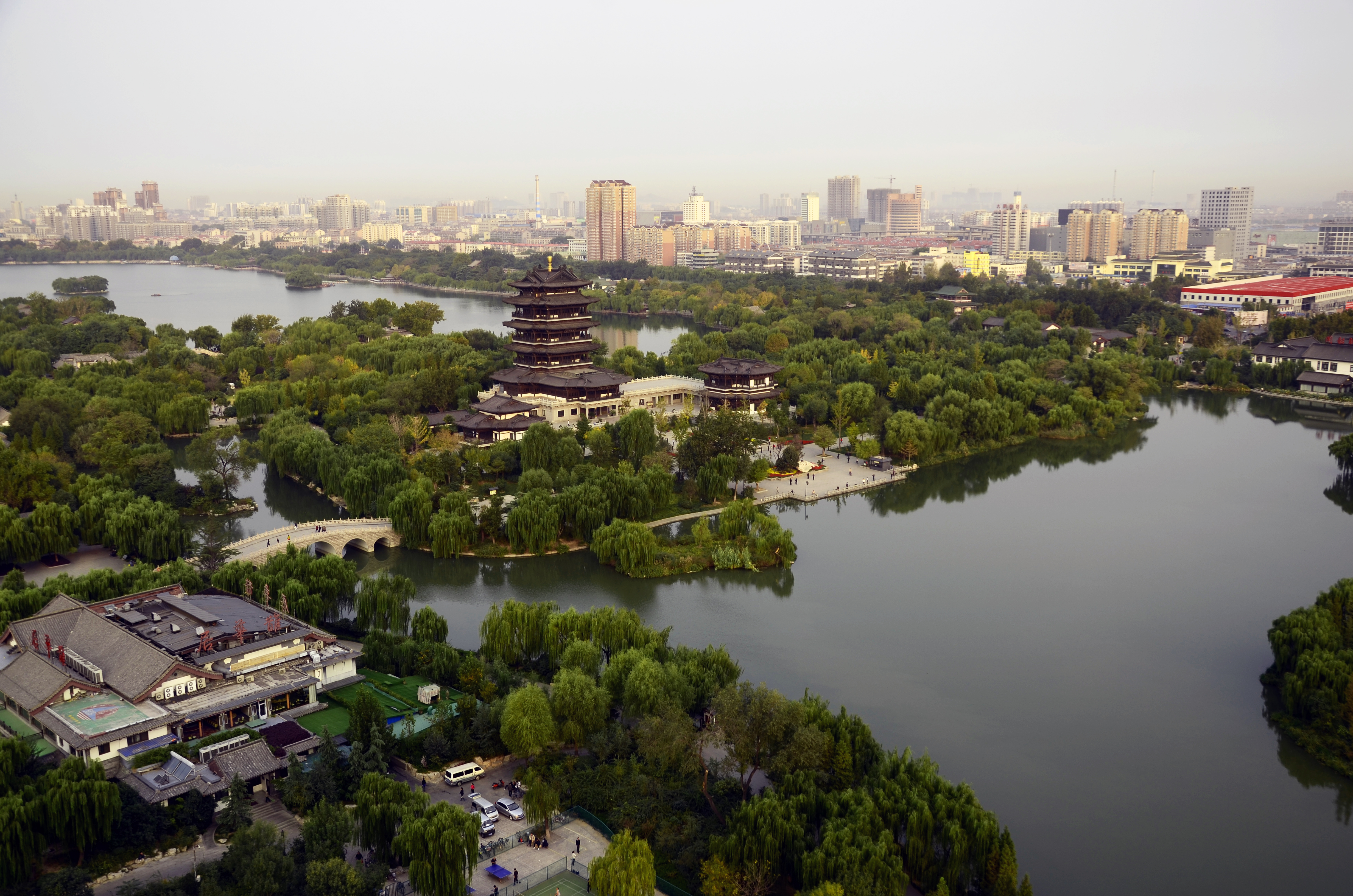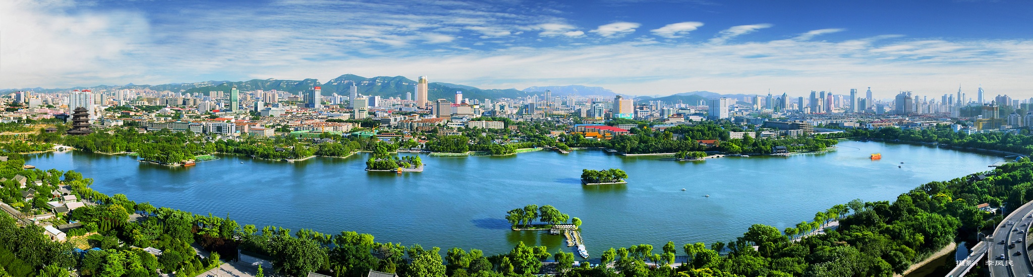 俯拍大明湖全景