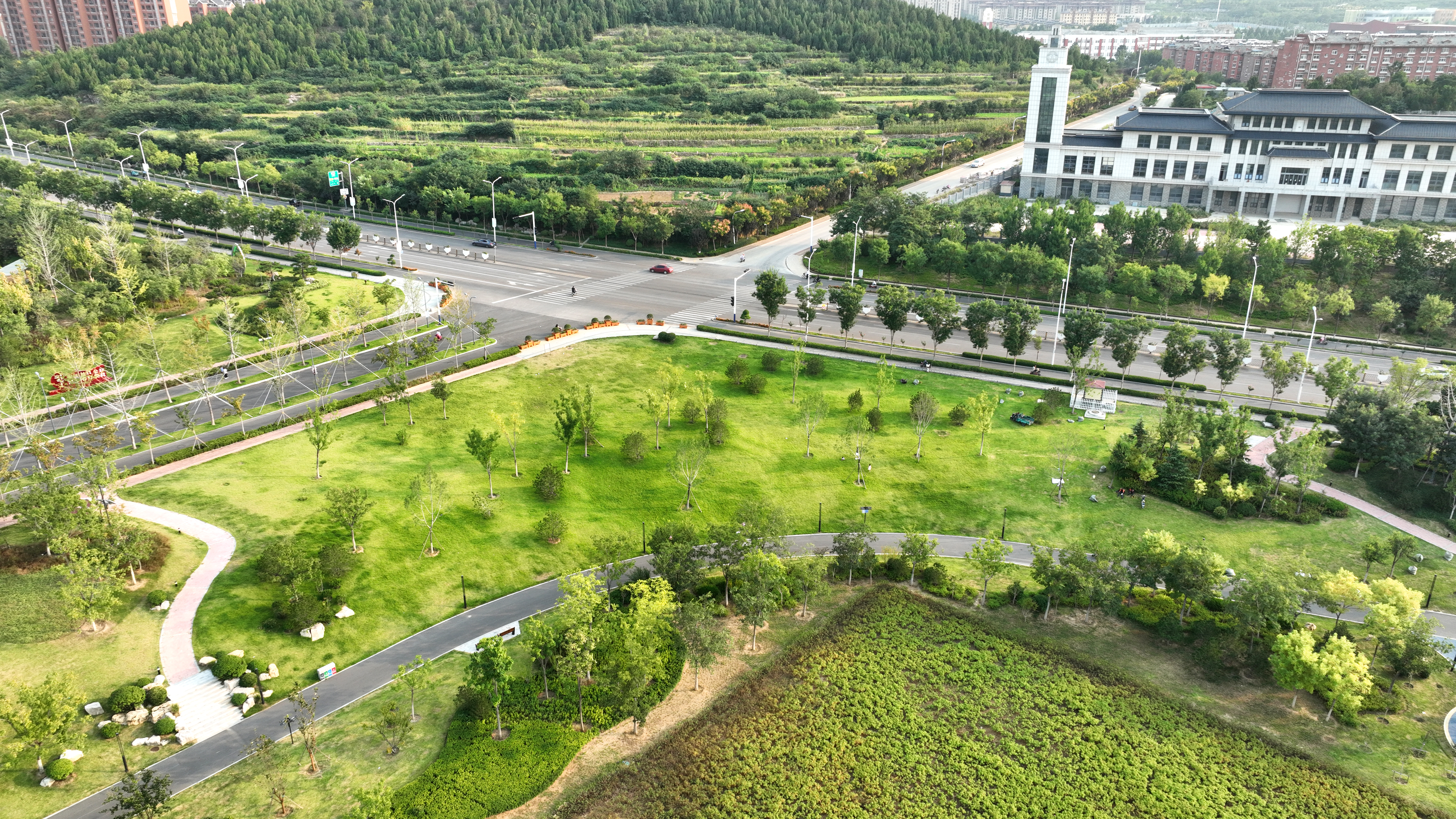 锦东公园是平阴“千园之城”系列工程的一个大手笔,它位于县城东部云翠新区,具体位置是在锦凤街以南、锦东大街以北、振兴街以东、滨河路以西。锦水河自东向西穿过公园,总面积为21.7公顷。项目主要内容为现有苗木移植、现场整理、回填种植土、水面扩建及驳岸处理、广场、园路、足球场、篮球场、木栈道、地下附属建筑、公厕、雕塑、景观桥、景观小品等公园基础设施、灌溉及亮化工程等。计划将其打造为具有现代、时尚、活力、生态、文化诸种元素的平阴新客厅。