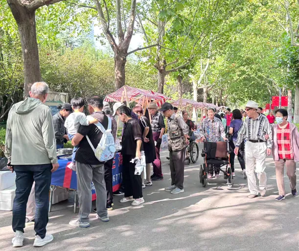 百花公园的多样活动满足不同市民游客的需求。国庆首日,西门内广场开展“红旗飘扬・歌唱祖国”活动,通过唱红歌、领红旗的互动形式,增进邻里关系,培养市民爱国情怀。“金秋”游园会市集将持续开展,既提升了公园服务功能、激活城市烟火气,又助力小微经济发展,成为市民休闲消费的热门选择。百咖萌宠乐园东门场地的“萌宠快跑运动会”深受亲子家庭喜爱。百花坊的“老济南记忆书画艺术展”也将持续进行,书画艺术家现场创作,用作品承载老济南记忆,增强与市民的互动。