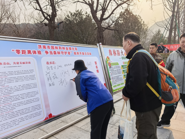 代表们和现场游客一起观看了森林防火主题宣传展板,听取工作人员关于森林火灾危害、预防措施及应急知识的讲解。随后,户外登山爱好者现场宣读了《森林防火倡议书》,代表们积极响应,共同签署《森林防火倡议书》,承诺从自身做起,争当森林资源的守护者和防火宣传的志愿者。