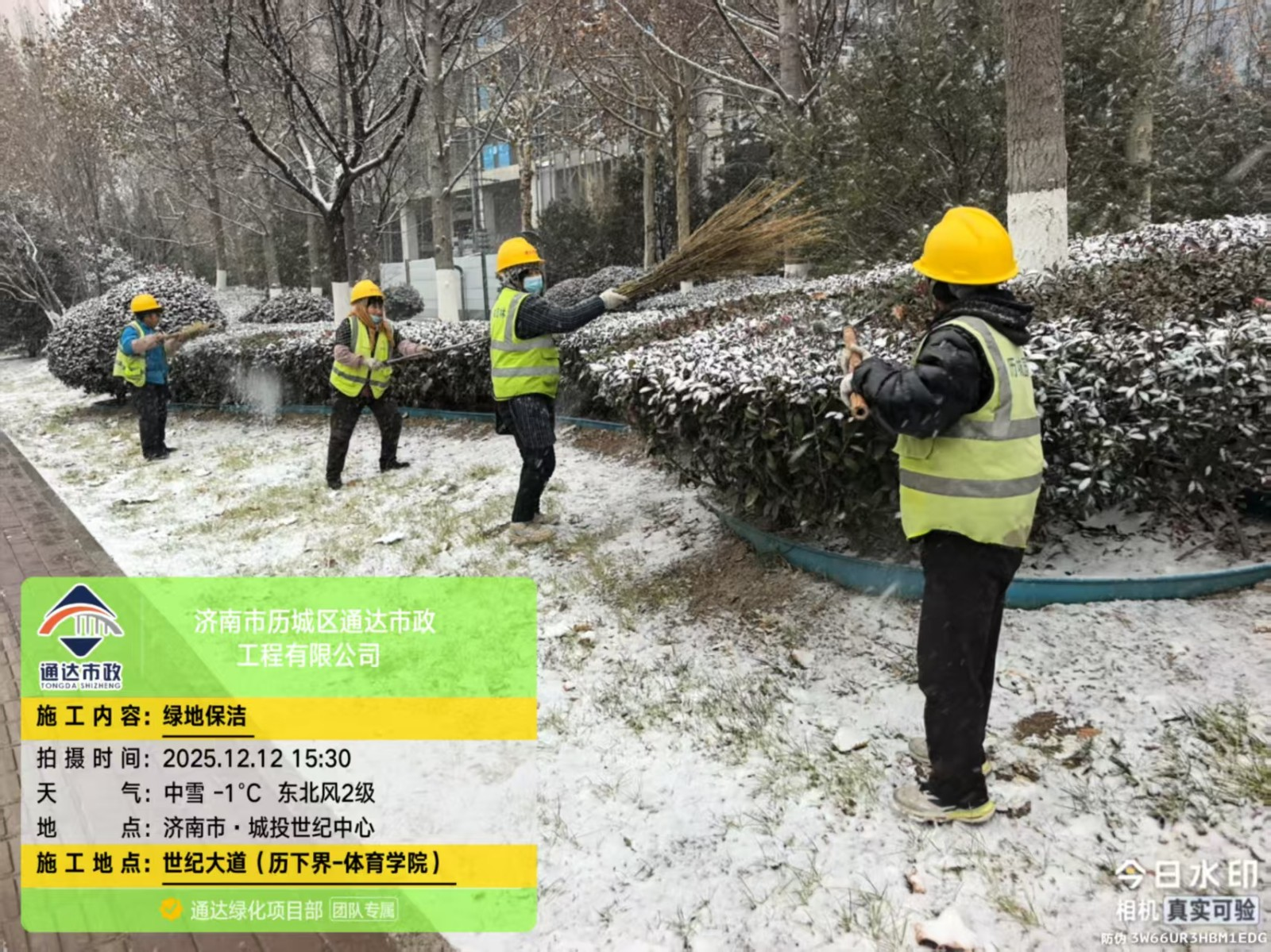 12日,济南迎来首场降雪。为有效应对本次寒潮雨雪等灾害性天气,保障济南市园林绿化工作安全稳定,济南市园林和林业绿化系统即刻行动,全力投入扫雪除冰工作,保障市民出行通畅、游园安全,同时也在呵护着植物安全越冬。