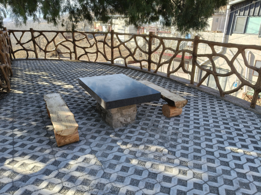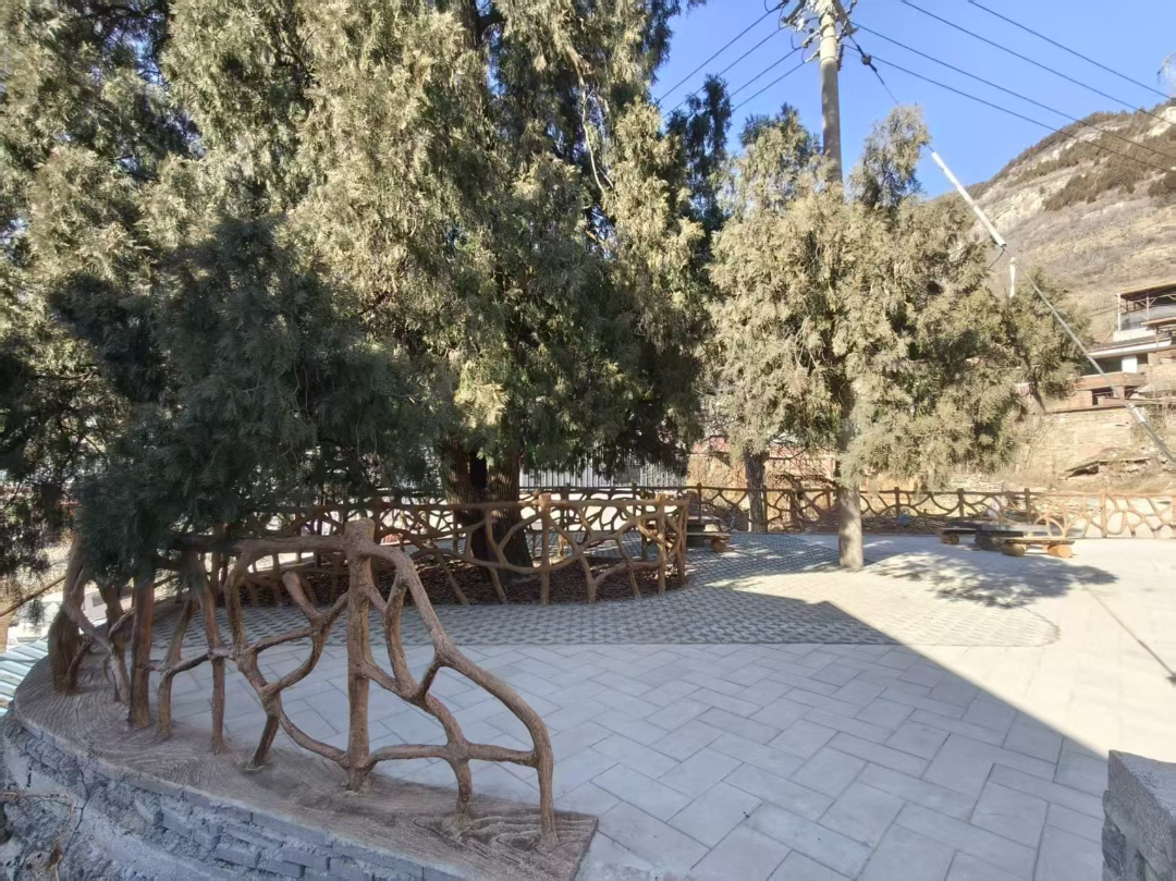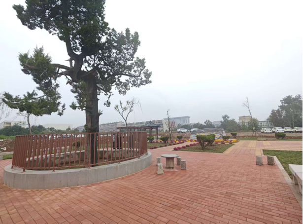 古树园的建设注重与居民生活空间有机融合,巧妙利用古树形成的天然绿荫,配套建设小型活动广场、休闲座椅等设施,将其转化为深受居民喜爱的“户外客厅”。南部山区积米峪古树园围绕古树设置造型自然、别致的仿木护栏,周边搭配小型活动广场与休憩桌椅,为村民提供日常活动与闲坐交流的舒适空间;钢城区大沟村古槐园结合乡村旅游需求,合理配置休闲游憩设施,使古树保护与乡村文旅相得益彰,成为一道亮丽的风景线;市中区后魏华庄古柏园在周边建设休闲广场,布置花卉、乔灌木、亭廊与坐凳,营造出层次丰富、功能复合的绿色公共空间,供居民日常活动与休憩使用。