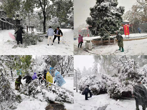 11月7日,济南突降暴雪,泉城银装素裹。市公园发展服务中心党委高度重视,提前安排部署,迅速启动应对极端天气的应急预案,将党史学习教育成果内化于心,充分发挥党员先锋模范作用,积极做好抗雪防灾和安全游园工作。